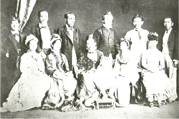 The Hong Kong Governor, Sir John Pope Hennessy, during his visit to Japan in 1879 (back row, third from right). Japan’s Finance Minister, Ōkuma Shigenobu, is to Pope Hennessy’s right, and Andō Tarō, Japan’s Consul in Hong Kong, is second from left. Photo originally published in Okuma-haku 100wa [One Hundred Tales] in 1909.