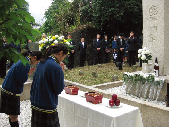 The Japanese section of the Hong Kong Cemetery does not contain memorials to any Japanese soldiers killed during the Second World War. With no family member to care for them, the graves were left unattended for over thirty years after the War, and only one headstone for three members of the same family has been added since 1946. In 1982, at the request of the Hong Kong government, the Hongkong Japanese Club undertook the necessary arrangements to move the Memorial to Ten Thousand Souls from So Kon Po to the Hong Kong Cemetery. This marked the beginning of the Club’s efforts to preserve the Japanese graves, and, in 1992 and 2000, with the support of the Japanese Foreign Ministry, it was able to secure the resources needed to carry out extensive restoration work.